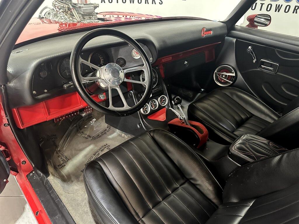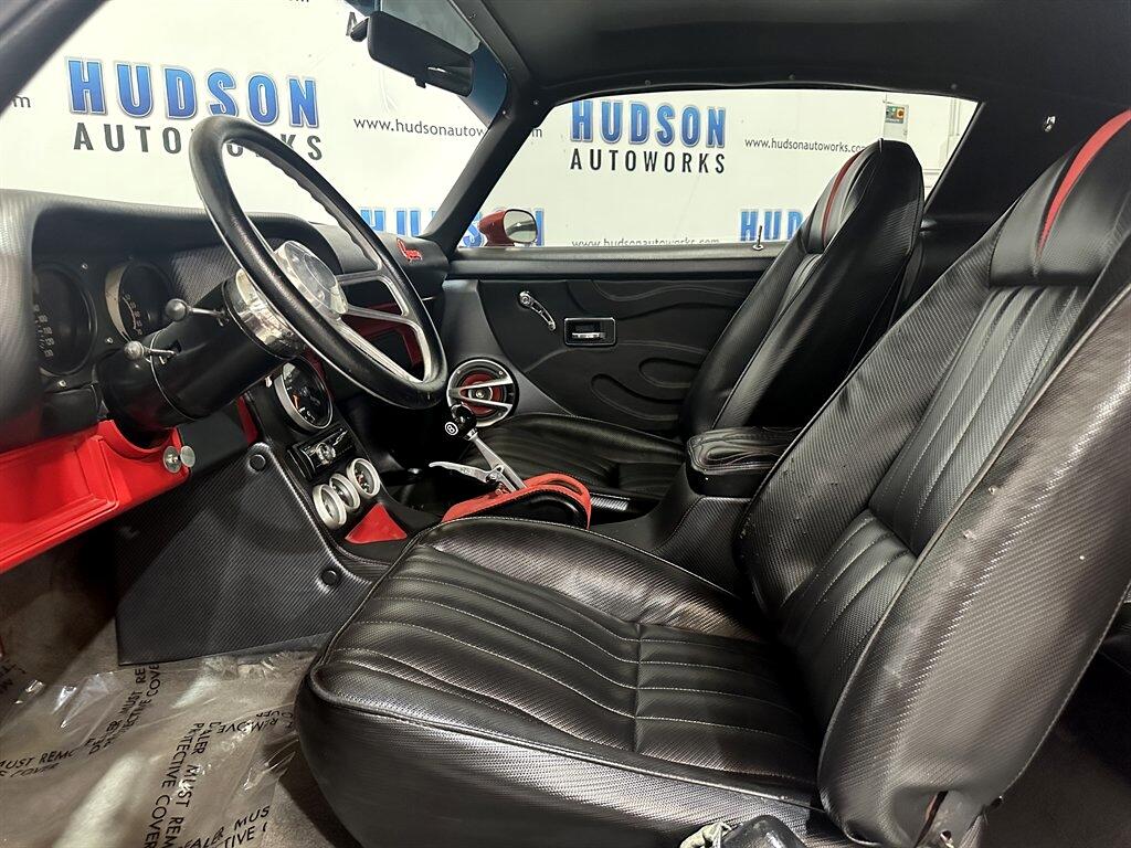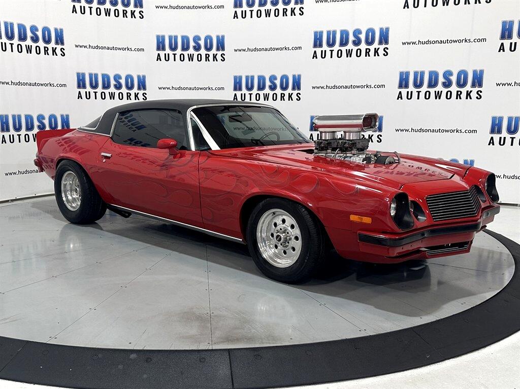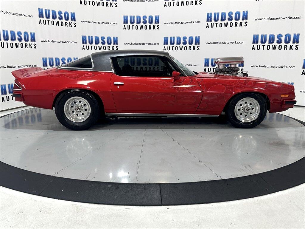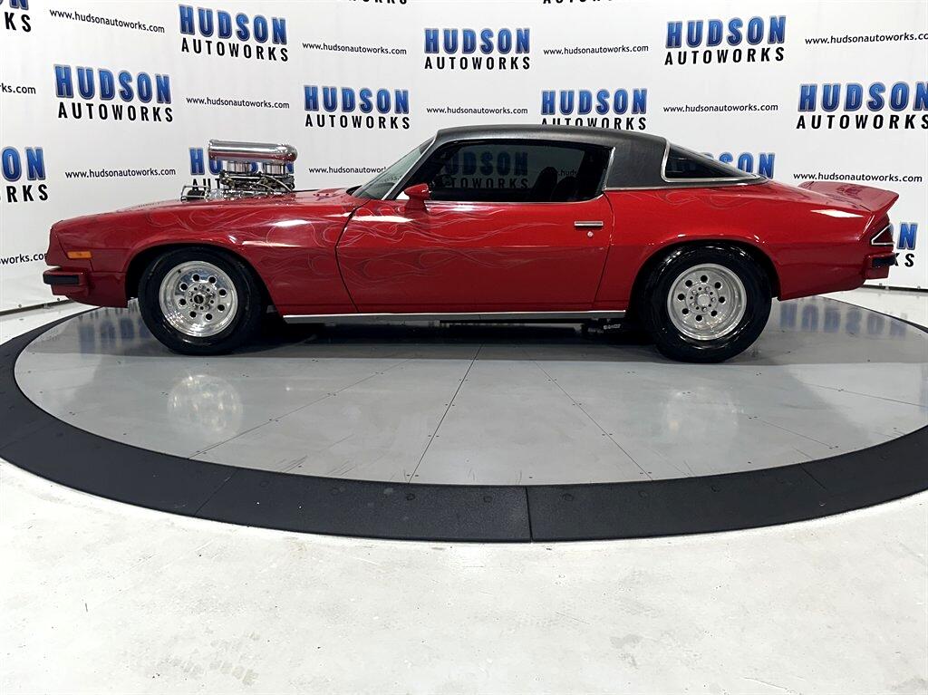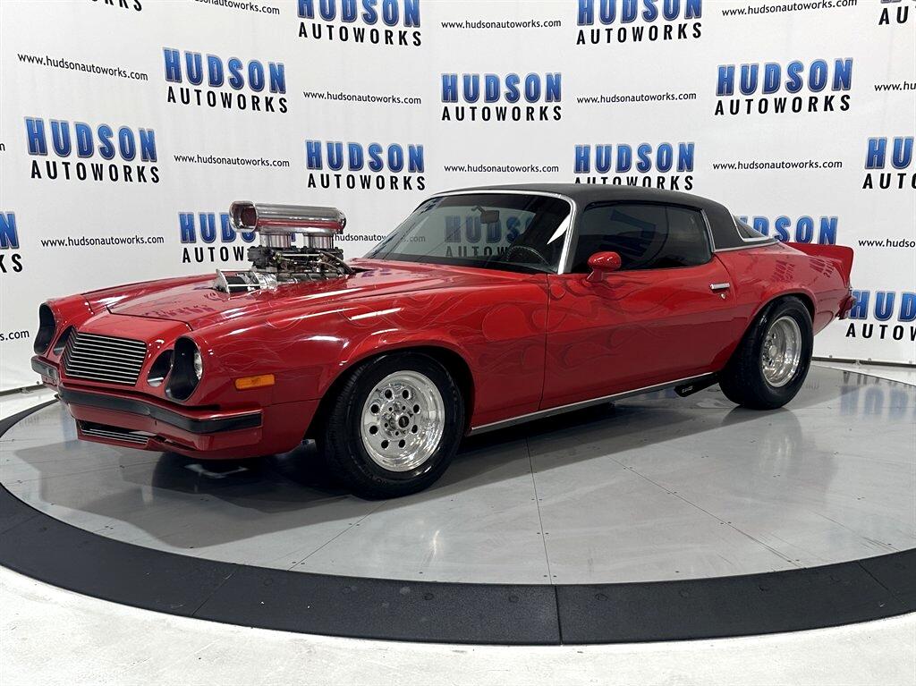 1975 Chevrolet Camaro  -  383ci V8 6.3L SBC  -  871 Dual Force Blower  -  Turbo 350 Automatic Transmission  -  10 Bolt Rear  -  Manual Steering  -  Manual Front Disc Brakes  -  Shaved Firewall  -  Electric Cooling Fans  -  Tractions Bars  -  Full Custom Interior  -  Bucket Seats & Center Console  -  Auto Meter Gauges  -  JVC Headunit  -  Door & Package Tray Speakers  -  Battery Relocated to Trunk  -  Headers &  Dual Pipes dumped before Rear Axle  -  275/60/15 Rear Tires  -  205/70/15 Front Tires  -  15in Weld Racing Draglite Wheels FINANCING AND SHIPPING AVAILABLE!!! Disclaimer: Hudson Autoworks takes great pride in the process of showcasing our classic and collector automobiles. Please keep in mind that these vehicles are pre-owned and do have their own imperfections. With that being said, it is encouraged that you view and inspect our vehicles here at our showroom, or schedule a pre-purchase inspection with your choice of mechanic or inspector.