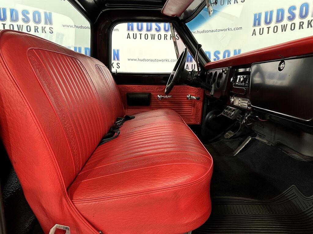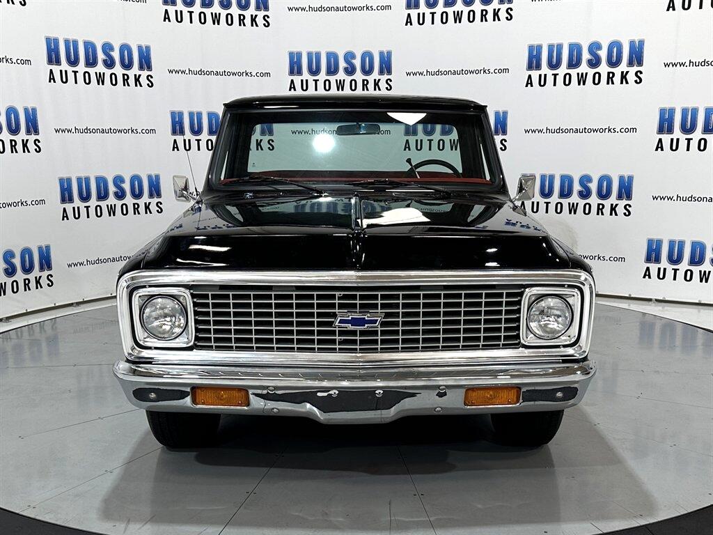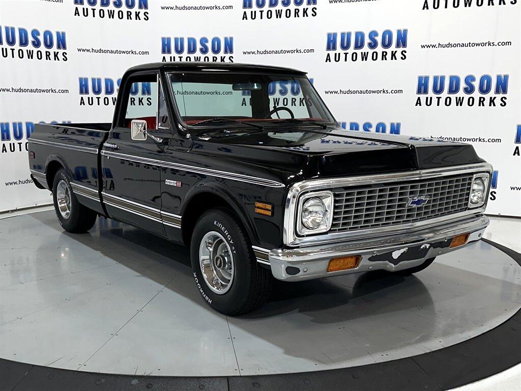1970 Chevrolet C10  -  Regular Cab Short Bed  - Black Exterior  -  Woodgrain Exterior Trim  -  Red Vinyl Bench Seat Interior  -  Column Shifter  -  396ci V8 6.6L  -   Turbo 400 Automatic Transmission  -  Headers & Dual Exhaust  -  New Tires  -  Power Steering  -  Aluminum Radiator with Electric Fan FINANCING & SHIPPING AVAILABLE!!! Disclaimer: Hudson Autoworks takes great pride in the process of showcasing our classic and collector automobiles. Please keep in mind that these vehicles are pre-owned and do have their own imperfections. With that being said, it is encouraged that you view and inspect our vehicles here at our showroom, or schedule a pre-purchase inspection with your choice of mechanic or inspector.